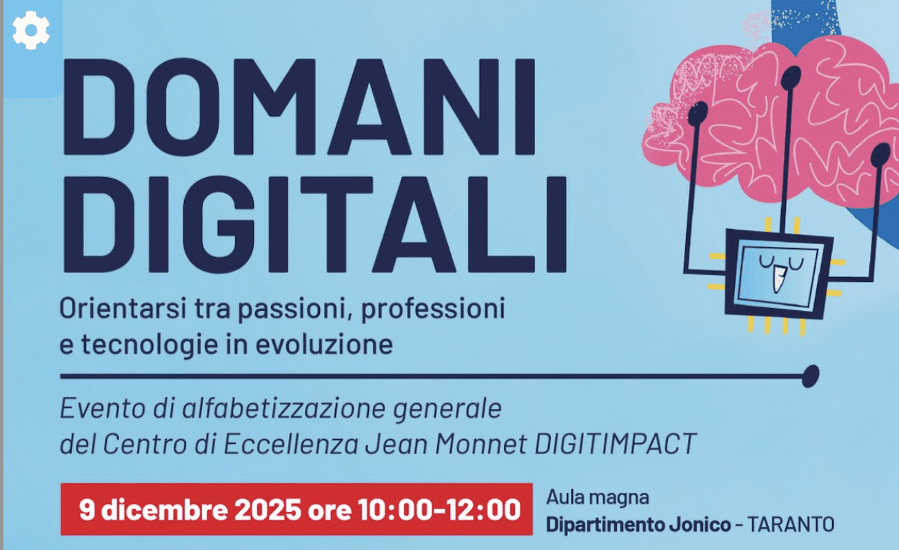 Il 9 dicembre il primo evento di alfabetizzazione generale del Centro DIGITIMPACT